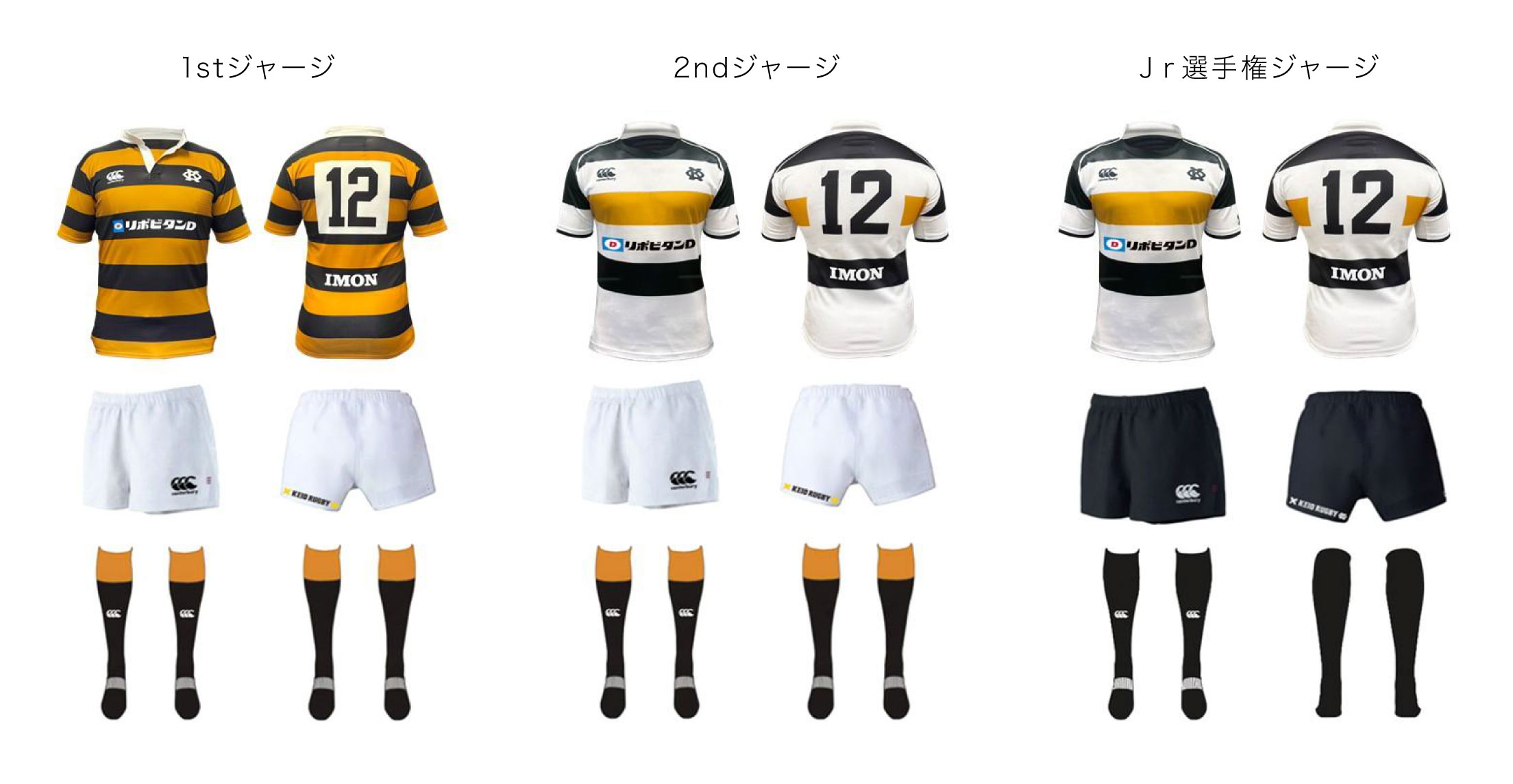 1stジャージ、2ndジャージ、Jr選手権ジャージ デザイン